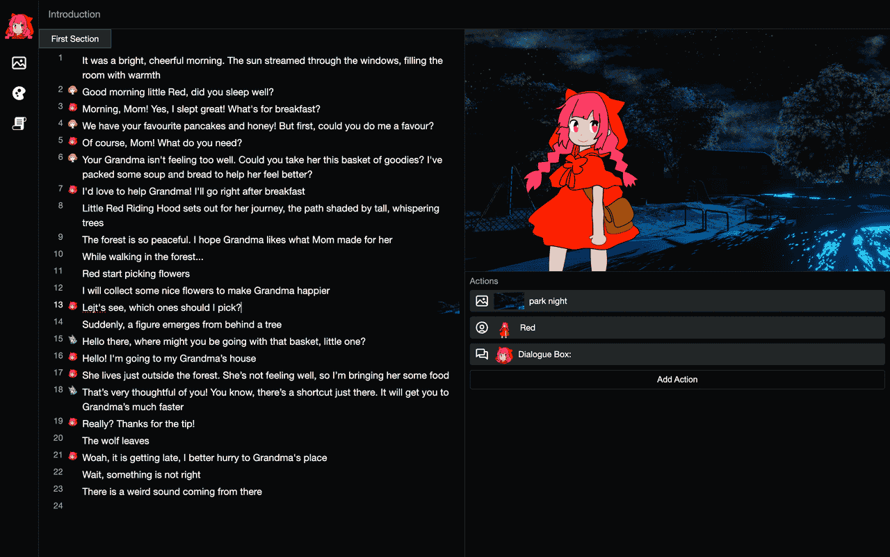 A spark of inspiration hit me when I was browsing some posts on Reddit. For the scene editor, what if we could put a text editor instead of the block editor? A text editor would be more familiar to people, and it would not require opening a separate dialog to edit the text. I gave this a try; I researched a lot about how rich text editors worked, and after many prototypes and trials, I concluded that it was possible. I considered this a breakthrough and a major UX improvement for the product.